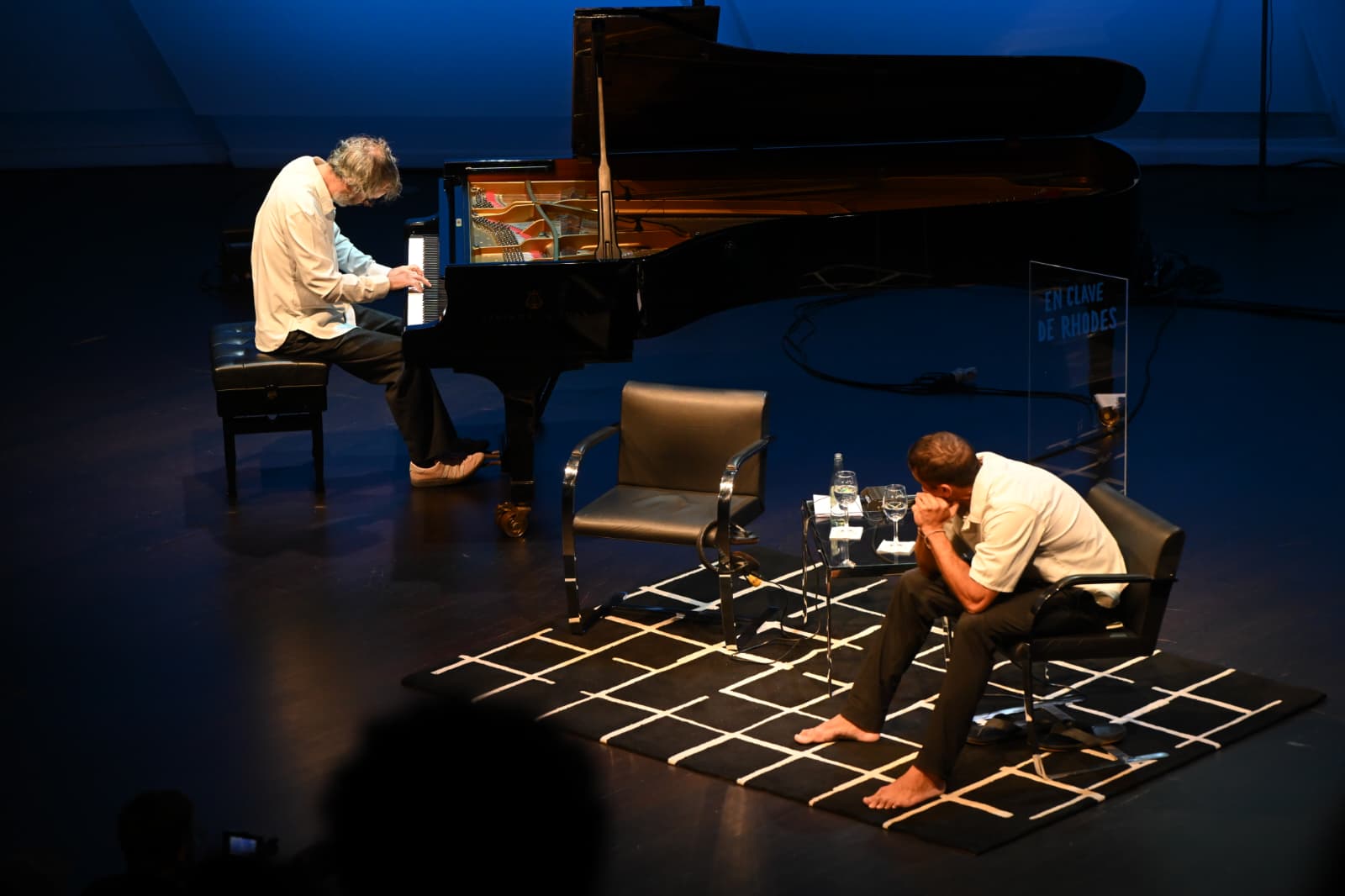 Como es habitual en los programas de Rhodes, la conversación empezó con una pregunta ya clásica: "¿De qué habla Álex García cuando no habla de la interpretación?". El diálogo fue salpicado por las piezas que James interpreta con exquisita maestría al piano. El director del programa dejó al Auditorio boquiabierto, lo mismo que el actor lagunero con sus reflexiones. Sin complejos, como él mismo expuso, vino "en cholas" y apeló al modo de vivir de los canarios. Desde la grada, los presentes les tributaron a los dos geniales conversadores una sonora y larga ovación. De pie, les despidieron. Las preguntas de James y las respuestas de Alejandro atravesaron el corazón de los oyentes. Una delicia de conversación.