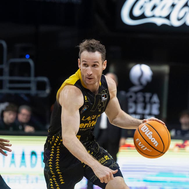LA LAGUNA, 18/10/2025.- El base de La Laguna Tenerife, Marcelinho Huertas, cumple 600 partidos en ACB, durante el partido de la jornada tres de la liga Endesa que enfrento a ambos equipos este sábado en el pabellón Santiago Martín en La Laguna, (Tenerife). EFE/Miguel Barreto / Miguel Barreto (EFE)
