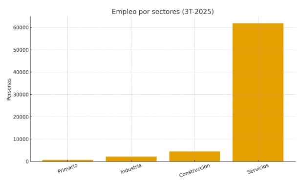 El sector servicios continúa siendo el motor económico, con 61.880 afiliados en el tercer trimestre, un incremento del 1,3% anual.