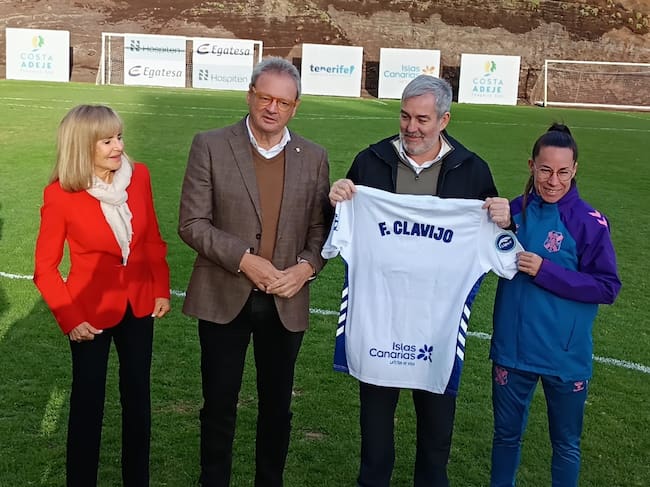 El presidente del Gobierno de Canarias, Fernando Clavijo, ha visitado en la mañana de este jueves el entrenamiento del primer equipo del CD Tenerife en su sección femenina en las instalaciones del Mundialito, Ofra. El máximo responsable institucional, Sergio Batista, junto a su junta directiva, cuerpo técnico y primer plantel, recibieron al presidente autonómico que felicitó el trabajo realizado por el club, pero no por el resultado actual, también por lo realizado en el pasado.
