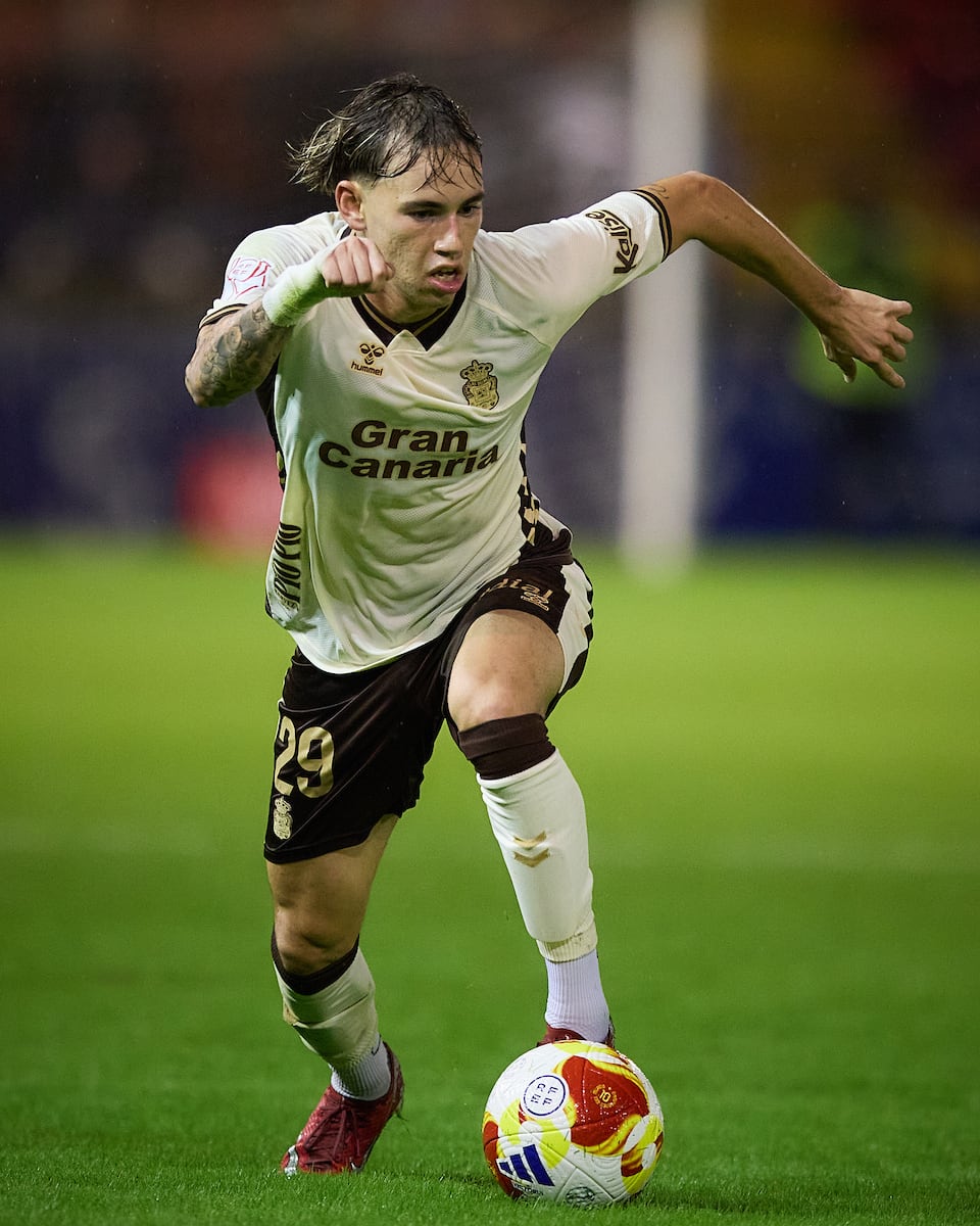 El delantero tinerfeño de 20 años llegó al club en verano de 2025 procedente del Sporting de Lisboa y ha jugado un partido de Copa y un tramo de un partido de Liga con el primer equipo
