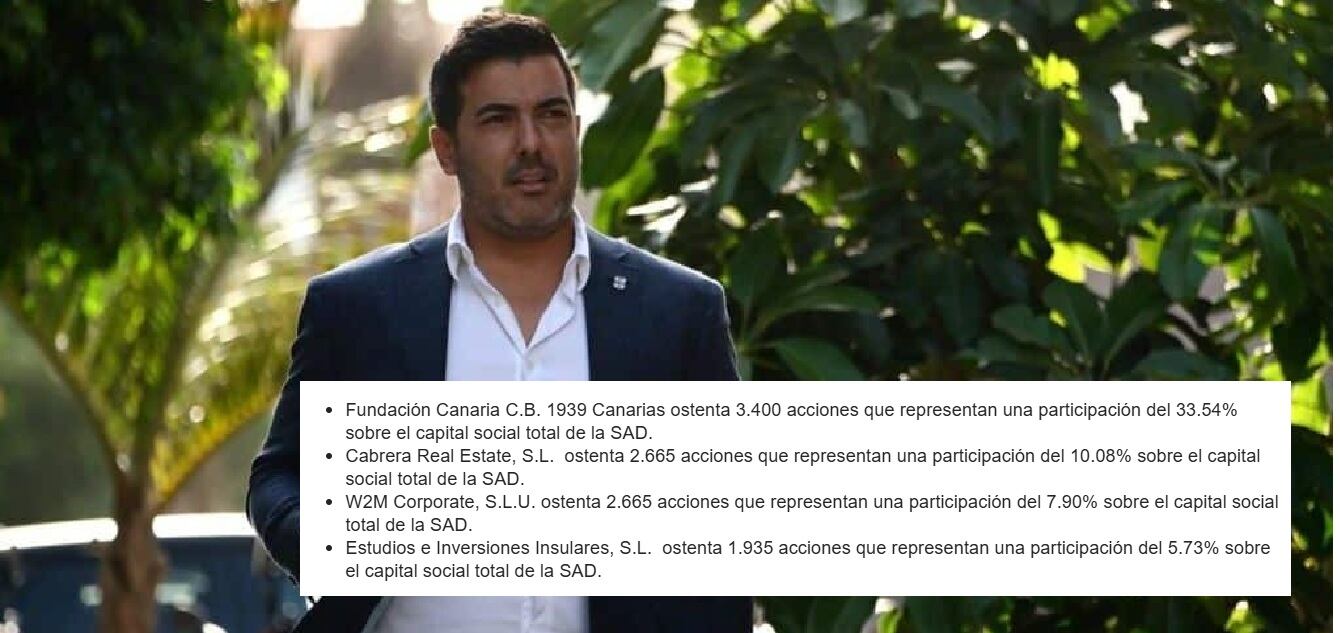 La documentación que obra en poder del Consejo Superior de Deportes sitúa al empresario tinerfeño con un 10,08% del capital social