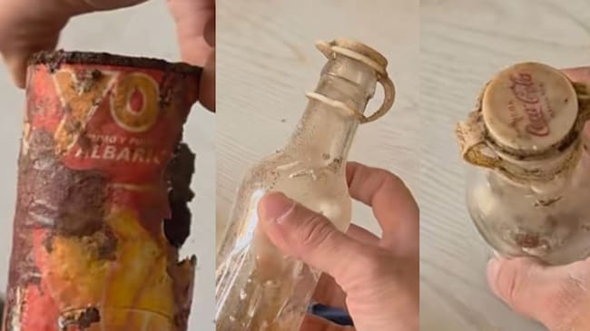 Un usuario de Tiktok ha compartido las imágenes de la reforma de un apartamento en Los Crisitanos, la veterana localidad turística del sur de Tenerife. El suelo del apartamento llevaba décadas instalado. Al levantarlo, han aparecido numerosos objetos. Entre ellos, latas de comida antiguas, cajetillas de tabaco, trozos de periódico, pequeños paquetes y distintos utensilios que, al parecer, fueron abandonados por los operarios que trabajaron en la obra original. Uno de los hallazgos más llamativos es una botella antigua de Coca-Cola, en un formato poco habitual hoy en día y que destaca por su buen estado de conservación.