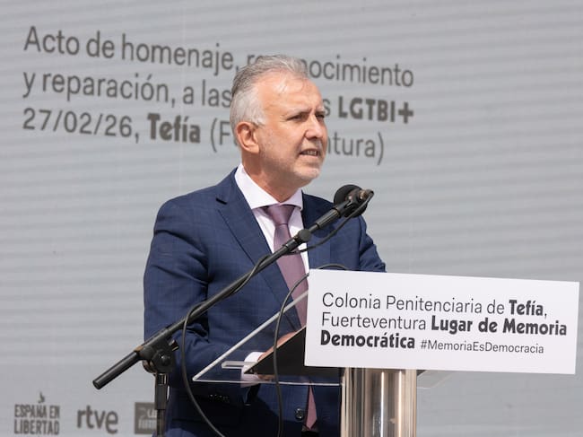 GRAFCAN656. TEFÍA (FUERTEVENTURA) (ESPAÑA), 27/02/2026.- El ministro de Política Territorial y Memoria Democrática, Ángel Víctor Torres, ha participado este viernes en un acto de reparación a la comunidad homosexual por la represión que sufrió en la dictadura franquista que se ha celebrado este viernes en la antigua Colonia Agrícola Penitenciaria de Tefía, en Fuerteventura, nuevo Lugar de Memoria Histórica. EFE/Carlos de Saá / Carlos de Saá (EFE)
