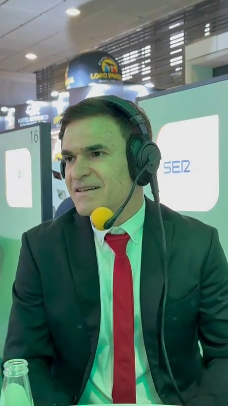 Héctor Fernández, consejero de la Sociedad de Promoción Exterior de Lanzarote, en el especial Hoy por Hoy Canarias de la Cadena SER desde la feria ITB de Berlín. / Cadena SER