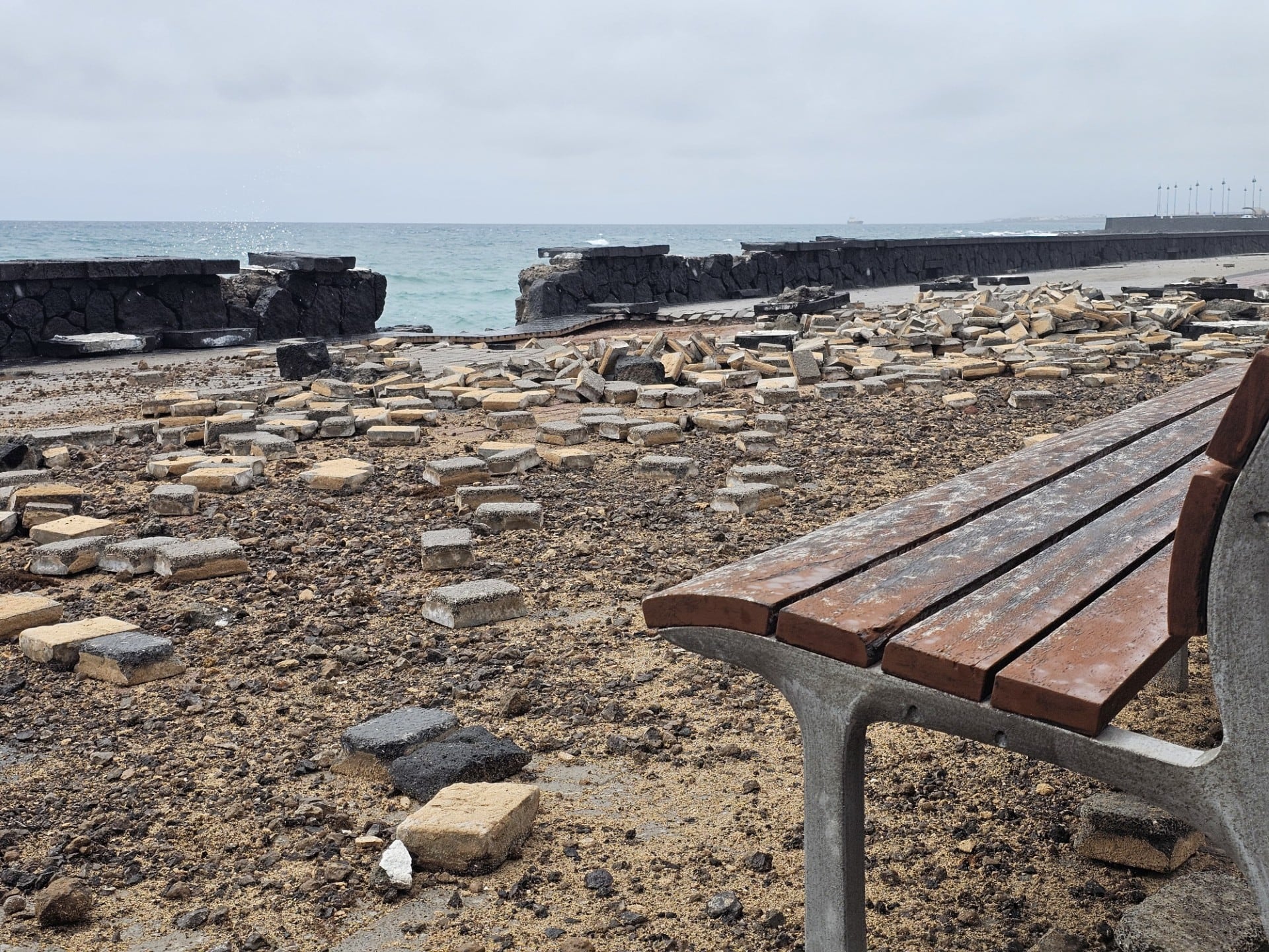 Además del pavimento, que fue levantado, durante este fin de semana el oleaje agravó el daño en un tramo del paseo, provocando el derribo de unos metros del muro perimetral creado en piedra volcánica en la década de los 90 del pasado siglo XX.