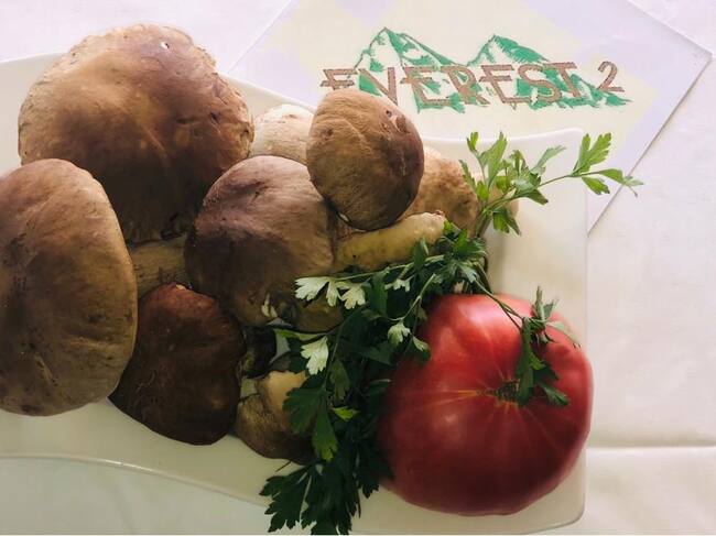 Hongos y verduras. Pero si hay algo que distingue al Everest II es el trato que da a un producto tan particular como son los hongos. La presencia de cada variedad se ciñe a su temporada, habiendo siempre en su carta un representante de estas pequeñas joyas gastronómicas.
