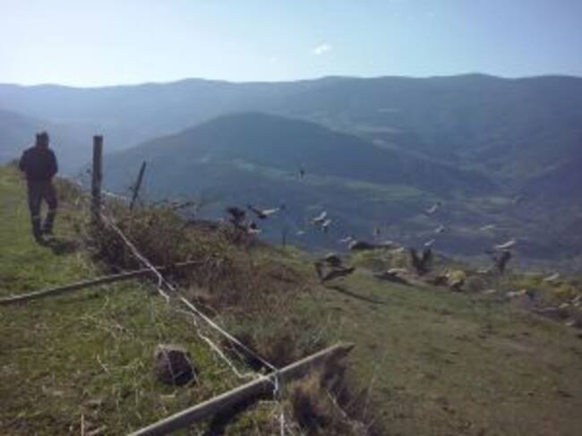 Voltors al voltan d'una vaca que van atacar a les muntanyes d'Enviny, segons l'Associació de Ramaders del Pallars / MANEL BERNACHO