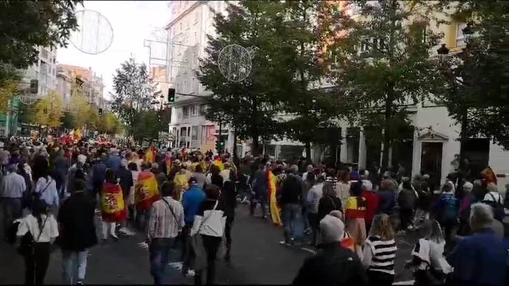Los manifestantes han coreado lemas como "Puigdemont a prisión", "Pedro Sánchez a prisión", "Sánchez dimite, España no te admite", además de vivas a España y gritos a favor de la unidad nacional.