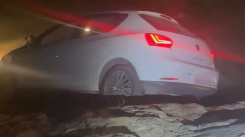 El vehículo siguió circulando por la zona marítima perseguido por los agentes de la Policía Local, se saltó varios semáforos en rojo y tras pasar por la calle Seve Ballesteros llegó hasta la playa de Los Peligros, donde se salió de la vía y el coche cayó por el terraplén y todo el morro quedó dentro del mar.