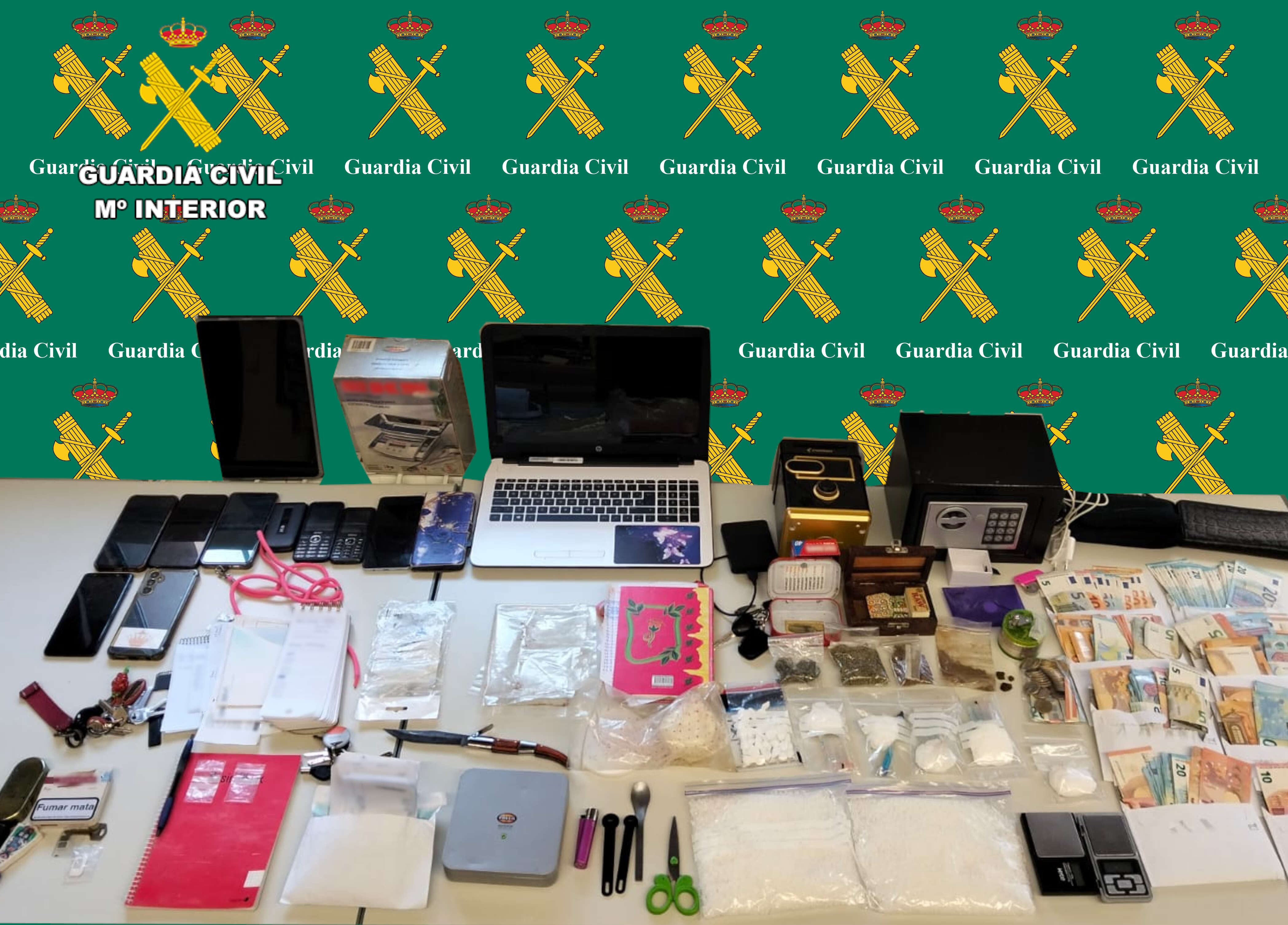 Por otro lado, se averiguó que la vivienda anterior era el punto de venta, existiendo otro piso en la misma localidad, donde se guardarían cantidades superiores de droga con la que preparar nuevas dosis para su distribución al menudeo.