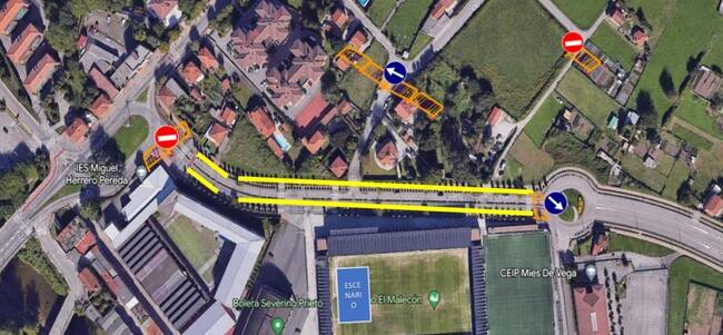Se cortará totalmente al tráfico el tramo comprendido desde la rotonda situada junto al Instituto Miguel Herrero hasta la glorieta de acceso al Barrio Covadonga situada junto al colegio Amós de Escalante.