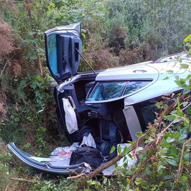 Una mujer y un hombre, de unos 70 años y de nacionalidad portuguesa, han resultado heridos este domingo tras una salida de vía en la CA-373, en el municipio de Udías.