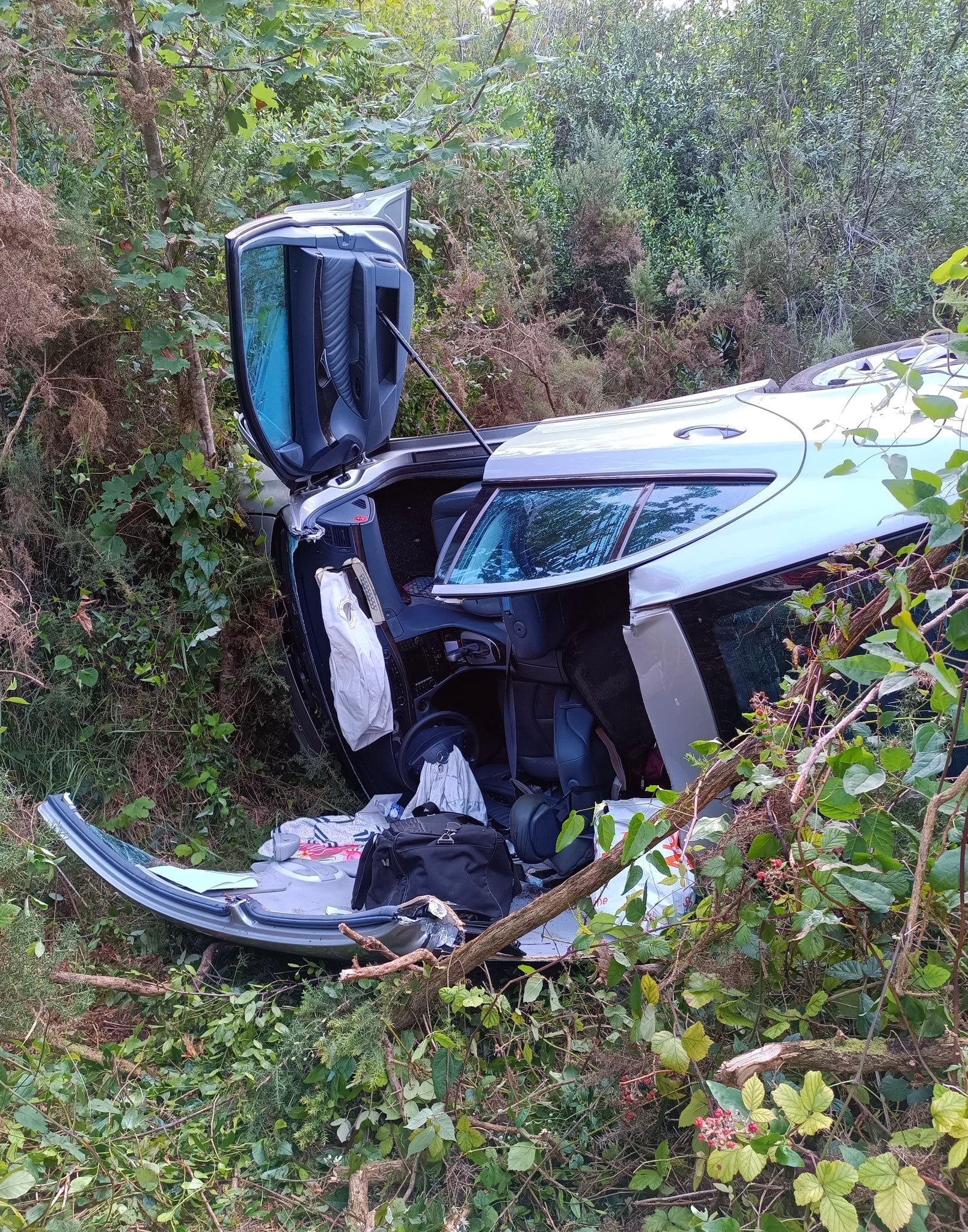 Una mujer y un hombre, de unos 70 años y de nacionalidad portuguesa, han resultado heridos este domingo tras una salida de vía en la CA-373, en el municipio de Udías.