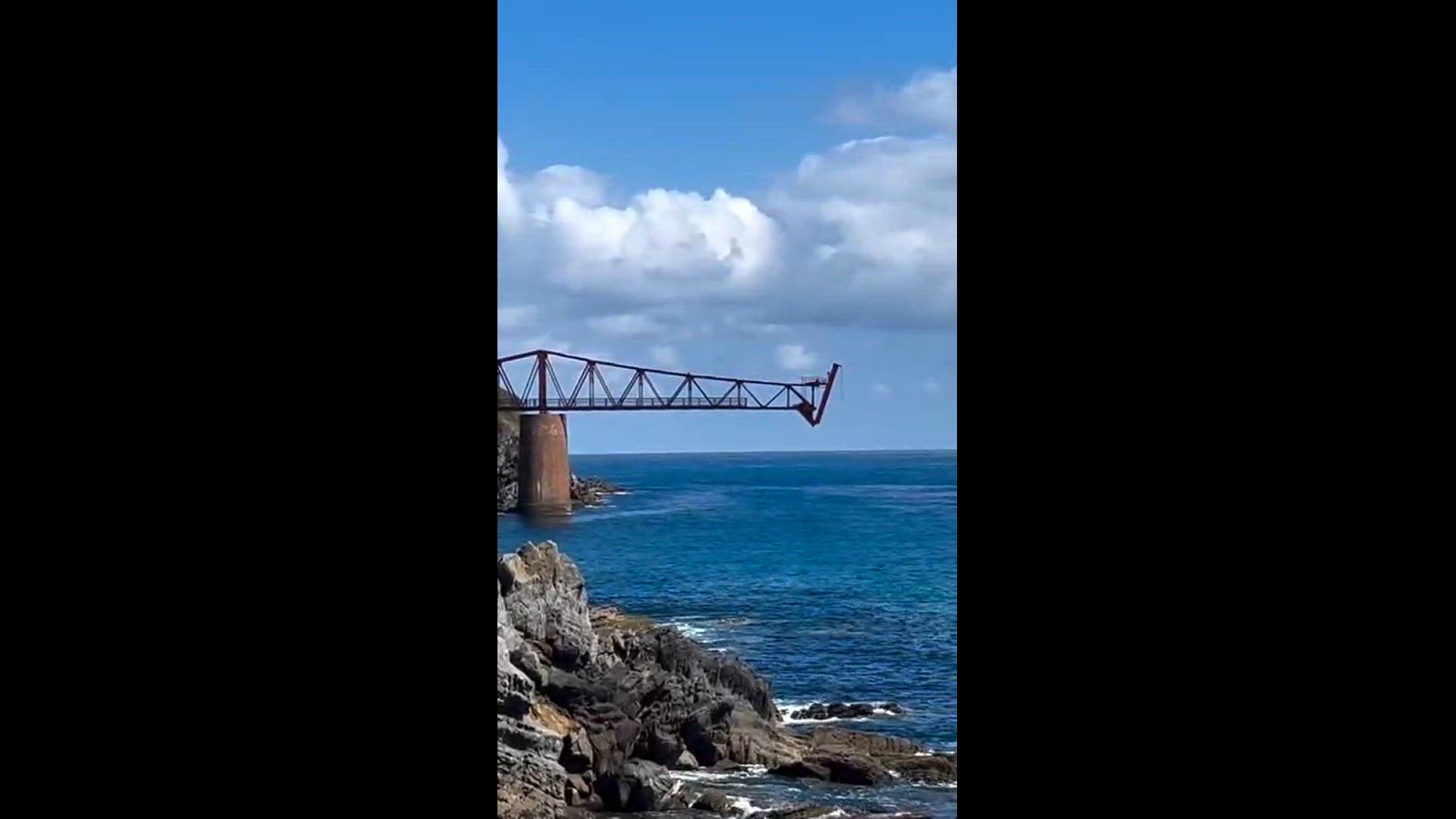 La Policía Local de Castro Urdiales investiga el vídeo que ha subido a redes sociales un hombre que monta un columpio suspendido sobre el bien cultural protegido del cargadero de Dícido, en Mioño, desde el que hace una acrobacia mientras se lanza al mar.
