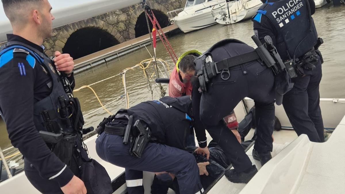 Cuatro agentes de la Policía Local de Santander han rescatado este sábado a un hombre de 80 años que ha caído al mar en el puerto deportivo de Puertochico.