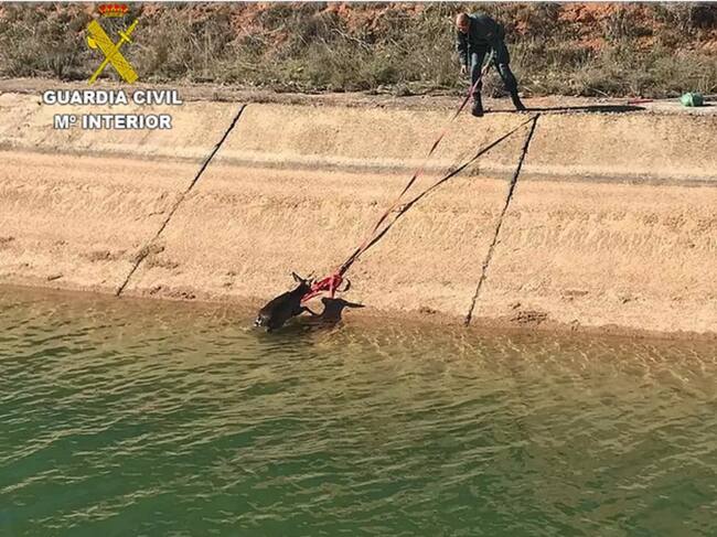 Con un lazo en una orilla del canal y auxiliados por un vecino de la localidad de El Picazo, en la otra orilla con otro lazo, consiguieron sacar al animal del canal, prácticamente extenuado. Tras ello, esperaron a su recuperación posterior para ser puesto en libertad en el medio natural.
