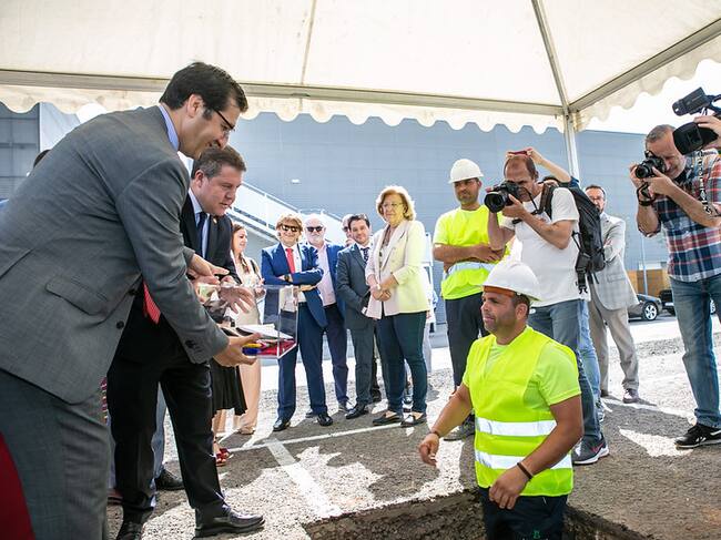 Emiliano García Page, junto al resto de autoridades en la colocación de la primera piedra del pabellón, en su 3ª fase / David Esteban