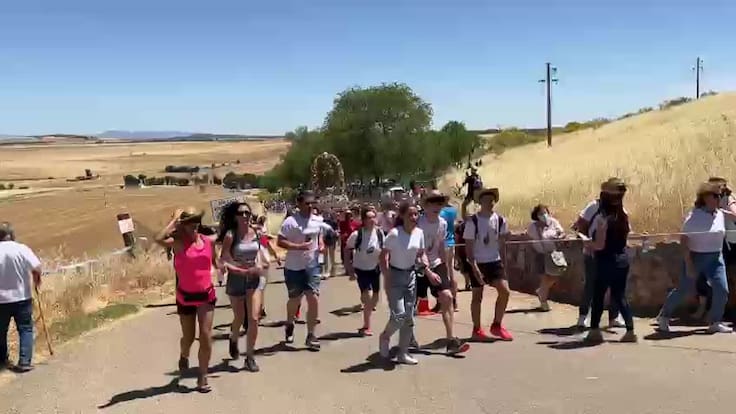Los jóvenes del anejo de Valverde suben en volandas a la Virgen de Alarcos en la empinada cuesta del cerro / SER Ciudad Real