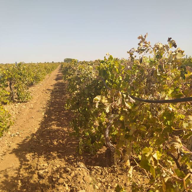 Los efectos del calor extremo son visibles ya en viñas de secano y también de regadío: la planta sufre una situación estresante, se queman las bayas lo que ocasiona que la uva se exponga directamente al sol, sin la protección de la hoja, con la consiguiente repercusión para años siguientes, por la debilidad de la planta y por tanto un índice de fertilidad más bajo, como nos ha contado Francisco Patiño, portavoz de la Sectorial Vitivinícola de ASAJA.