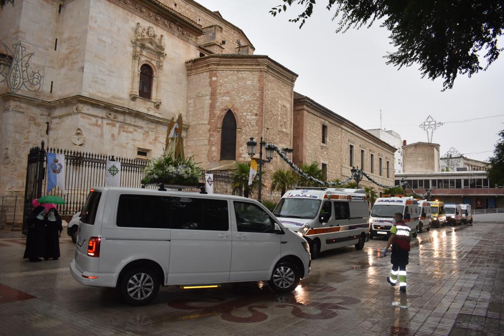 La lluvia caída durante todo el viernes no impidió la celebración de la tradicional Caravana Blanca de los Enfermos, marcando así el preámbulo de los actos de feria en Ciudad Real que se celebrarán hasta el 22 de agosto. Es la ofrenda de los mayores y enfermos a la patrona de la capital ciudadrealeña.