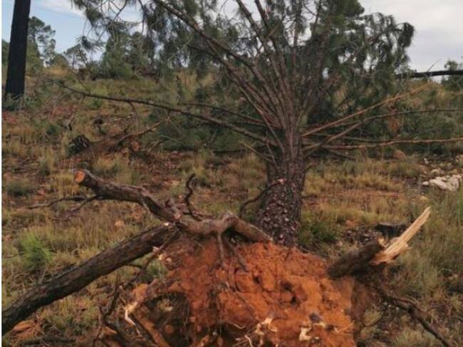 Pinos y almendros arrancados tras una fuerte tormenta en Mira