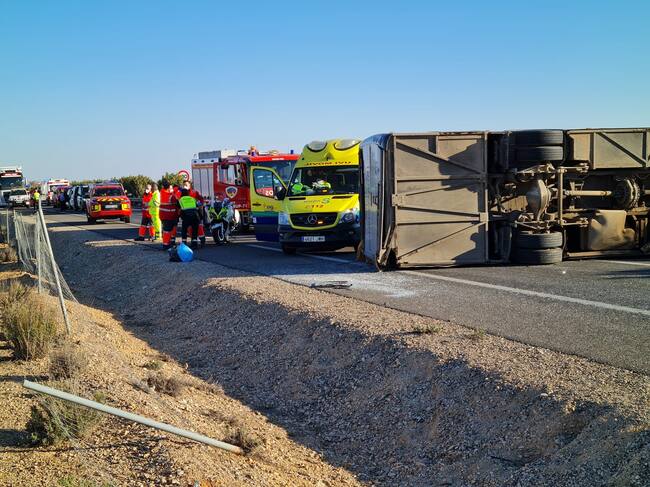 El accidente provocó el corte de la autovía Madrid-Alicante en sentido Madrid y dar paso alternativo por otras vías hasta que el autobús fue retirado cerca ya de las 19,30 horas. En el dispositivo participaron una dotación de bomberos de La Roda, que tuvo que excarcelar al monitor que sufrió las heridas más graves, además de efectivos de la Guardia Civil de Tráfico, tres UVIs y una ambulancia de soporte vital básico.