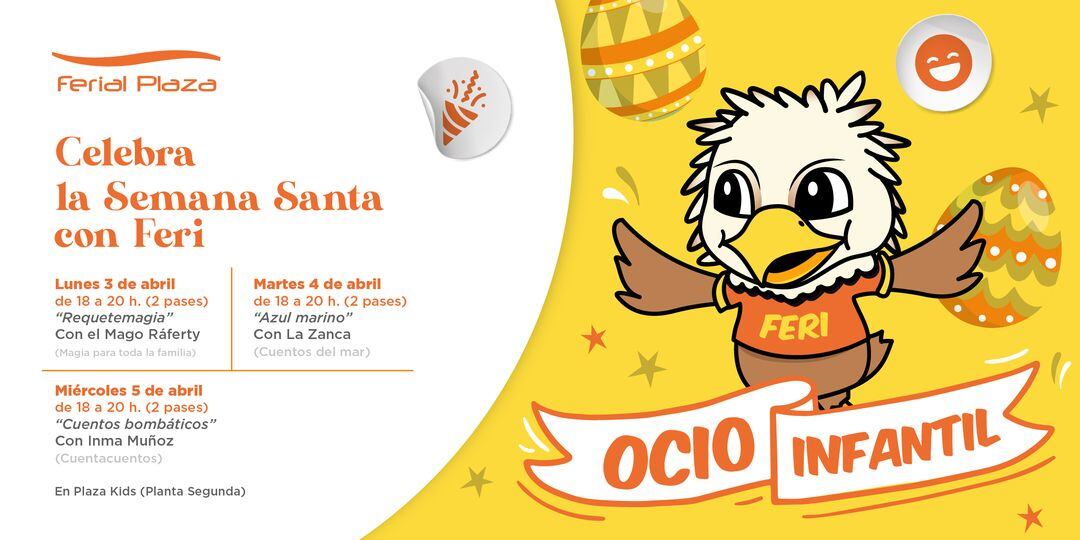 ¿Te quedas en Guadalajara durante la Semana Santa? ¡No pasa nada! El Ferial Plaza ha organizado tres días donde la diversión en familia está garantizada. Los días 3, 4 y 5 de abril habrá actuaciones de carácter infantil a cargo del Mago Ráferty, La Zanca e Inma Muñoz. Además, los tres días comparten en el mismo horario, de 18:00 h a 20:00 h y son actividades totalmente gratuitas.