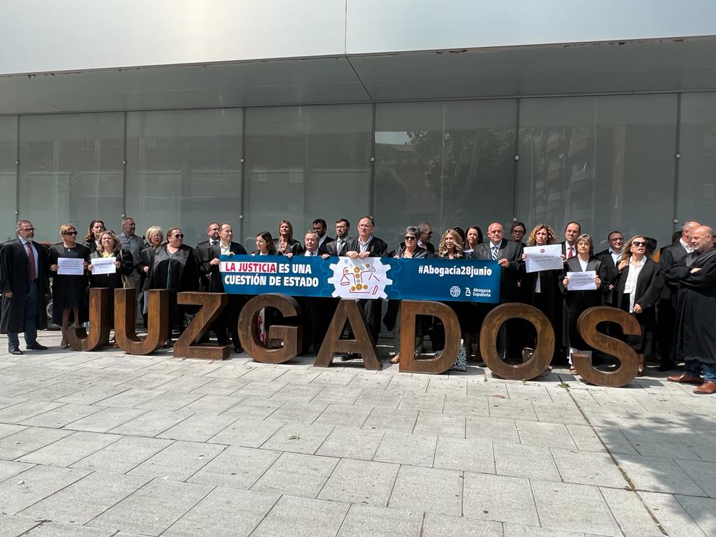 Decenas de abogados y procuradores se han concentrado HOY a las puertas de los Juzgados de Cuenca para denunciar la situación que atraviesan por la paralización del sistema judicial por las sucesivas huelgas y parones que llevan meses convocando los funcionarios relacionados con la justicia. Es por ello que solicitan un gran pacto de Estado tras las elecciones del próximo 23 de julio para poner una solución a esta situación.