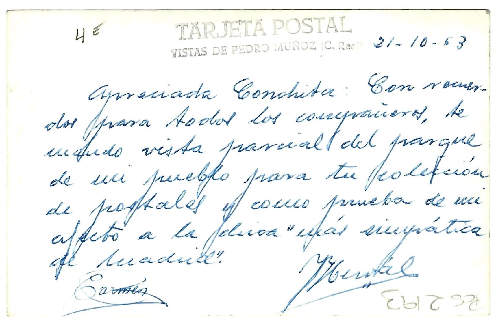 La postal, circulada en 1963, comentada esta semana es una "postal atípica". Mostraba una foto de un fotógrafo local y estaría en concordancia con la fecha de la inauguración. No tenía material impreso y lo que tiene en el reverso es un sello de caucho que puso en la tarjeta postal. Una postal que fue enviada a una persona que las coleccionaba. En cuanto al texto, incide, precisamente, en que en los años 60 todavía había coleccionismo de postales, "cuya edad de oro duró hasta la guerra civil manteniéndose en el tiempo, aunque no con la fuerza que tenía a principios de siglo".