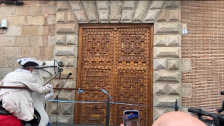 Cuatro minutos pasaban de las 17:00 horas de la tarde cuando el Gran Cortejo de Mondas 2024 daba comienzo. Un comienzo accidentado ya que, como es tradición, el lancero o mayordomo, Antonio Batres, intentaba tocar con su lanza la Puerta Noble del Ayuntamiento de Talavera de la Reina, ha sido entonces cuando el caballo se ha puesto nervioso y han caído ambos al suelo. Batres, ha vuelto a tocar la Puerta Noble esta vez sin el caballo y a pie. Así arrancaba el Gran Cortejo de Mondas 2024 en la ciudad. Con unos espectadores emocionados y aplaudiendo fuerte a Batres que lleva más de 40 años protagonizando el cortejo.