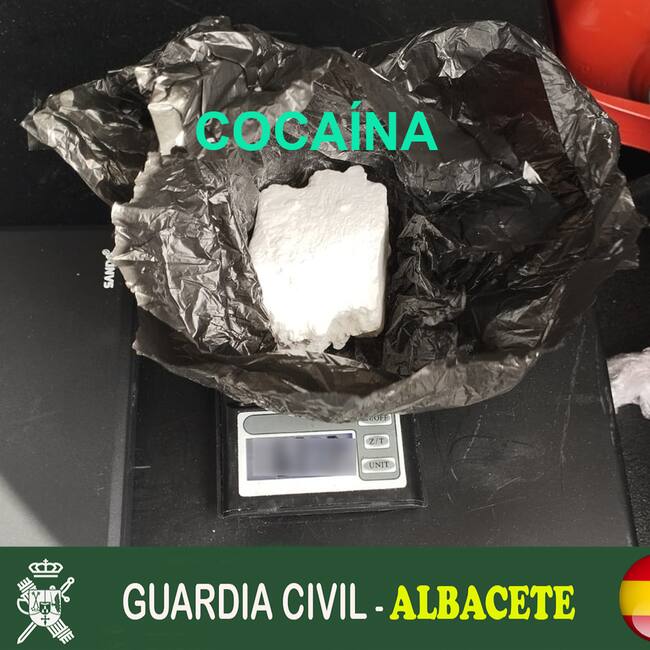 Detienen en Villatoya (Albacete) a un vecino de Valencia, de 40 años de edad, como presunto autor de un delito contra la salud pública, en la modalidad de tráfico de drogas. En total, fueron intervenidos 63 gramos de cocaína además de una báscula de precisión. La Guardia Civil de Albacete determinó, por medio de un narcotest que podrían haberse elaborado 660 dosis para su venta en el mercado ilegal.