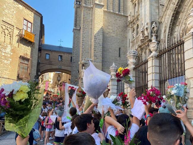 El colegio Alfonso VI, Infantes o Maristas Santa María han sido algunos de los centros participantes, cuyos escolares, junto a sus profesores, han cantado canciones y recitado poesías mientras entregaban sus ramos a una representación del sacramento.