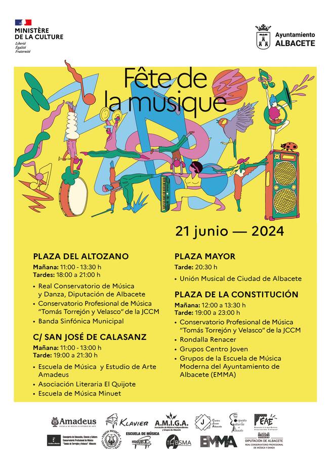 - En la Plaza del Altozano, la jornada comenzará por la mañana de 11:00 a 13:30 horas y continuará por la tarde de 18:00 a 21:00 horas. Participarán el Real Conservatorio Profesional de Música de la Diputación de Albacete, el Conservatorio Profesional de Música y Danza "Torrejón y Velasco” de la Junta de Comunidades de Castilla-La Mancha y la Banda Sinfónica Municipal.