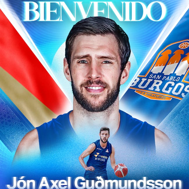 Jón Axel Guðmundsson (27/10/1996, Grindavík, Islandia) competirá como base en el San Pablo Burgos que disputará el próximo curso 2024/25 de la nueva Primera FEB, antigua LEB Oro. El islandés de 1,95 metros se presenta como un director de juego que destaca por su altura y por su físico y que sobresale por su forma de jugar para el equipo, eligiendo las mejores opciones con sus compañeros sobre la pista.