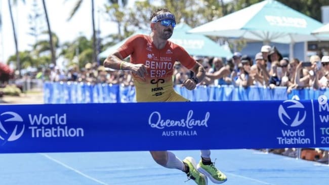 El triatleta tomellosero Antonio Benito se ha proclamado este domingo campeón del mundo de Triatlón de Larga Distancia (3.000 metros de natación, 114 km de bici y 30 km de carrera a pie) en Townsville (Australia), en el Evento Multideporte de World Triathlon.