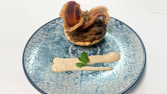 5. El Desván de Bargas: Tartaleta de mechada de venao con crujiente de torrezno de Soria