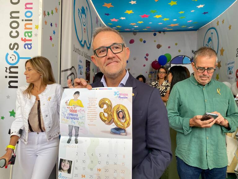 En el marco de la Feria de Albacete, el presidente de la Diputación Provincial, Santi Cabañero, y el de la entidad social, Juan García, han presentado el calendario solidario 2025 de la Asociación de Familiares y Amigos de Niños Enfermos de Cáncer. El calendario se puede adquirir por un donativo de cinco euros, y lo recaudado se destinará a los programas y servicios que Afanion ofrece a las familias afectadas por el cáncer infantil. El presidente de la asociación, Juan García, ha destacado la importancia de esta iniciativa para financiar los proyectos que se llevan a cabo en apoyo a los menores y sus familias.