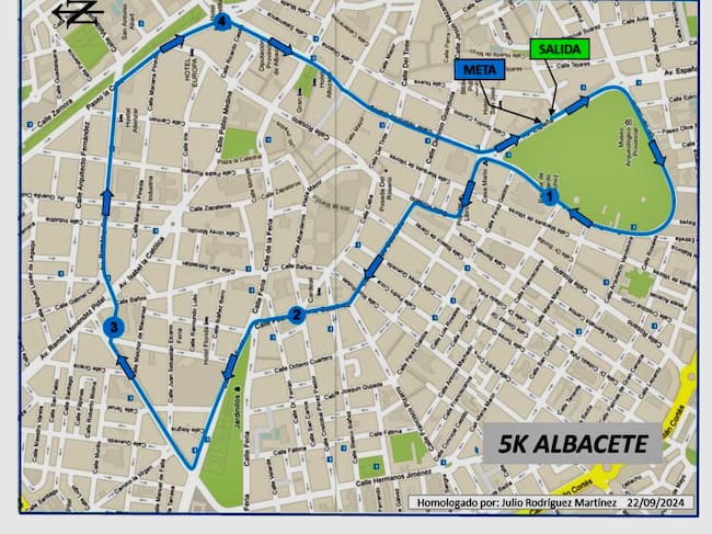 El recorrido previsto para la 5K, donde se incluye la carrera ‘Corre con tu médico’, tendrá lugar también mañana, sábado, a las 20:00 horas, desde la Avenida de España (salida), Plaza Benjamín Palencia, Arcángel San Gabriel, La Estrella, Pedro Simón Abril, Plaza Gabriel Lodares, Octavio Cuartero, Rosario, Dionisio Guardiola, Pedro Martínez Gutiérrez, farola molino feria, Calle Feria, Av. Arquitecto Julio Carrilero, calle Pozo, Plaza de Isabel II, Av. Ramón y Cajal, Paseo de la Cuba, Paseo de la Libertad, Plaza Altozano, Marques de Molins, Tesifonte Gallego, Plaza Gabriel Lodares y Avenida de España (meta).