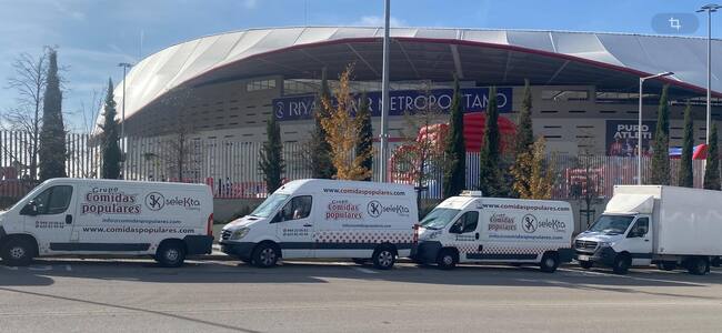 Vehículos de 'Paco Paellas' junto al Metropolitano