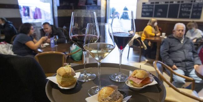 Bandeja con vino y aperitivos en un restaurante / Jorge Peteiro (EUROPA PRESS)