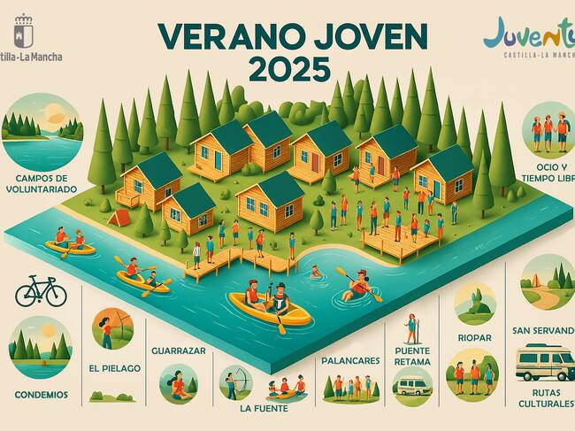 El Gobierno de Castilla-La Mancha ofrece hasta 1.071 plazas para diferentes actividades para los jóvenes, de entre 8 y 17 años, durante la época veraniega. Actividades que se reparten en 26 campamentos, que se van a desarrollar en las cinco provincias de la región, así como en Cantabria, Madrid, Álava, A Coruña, Alicante, Guipúzcoa o Valencia.