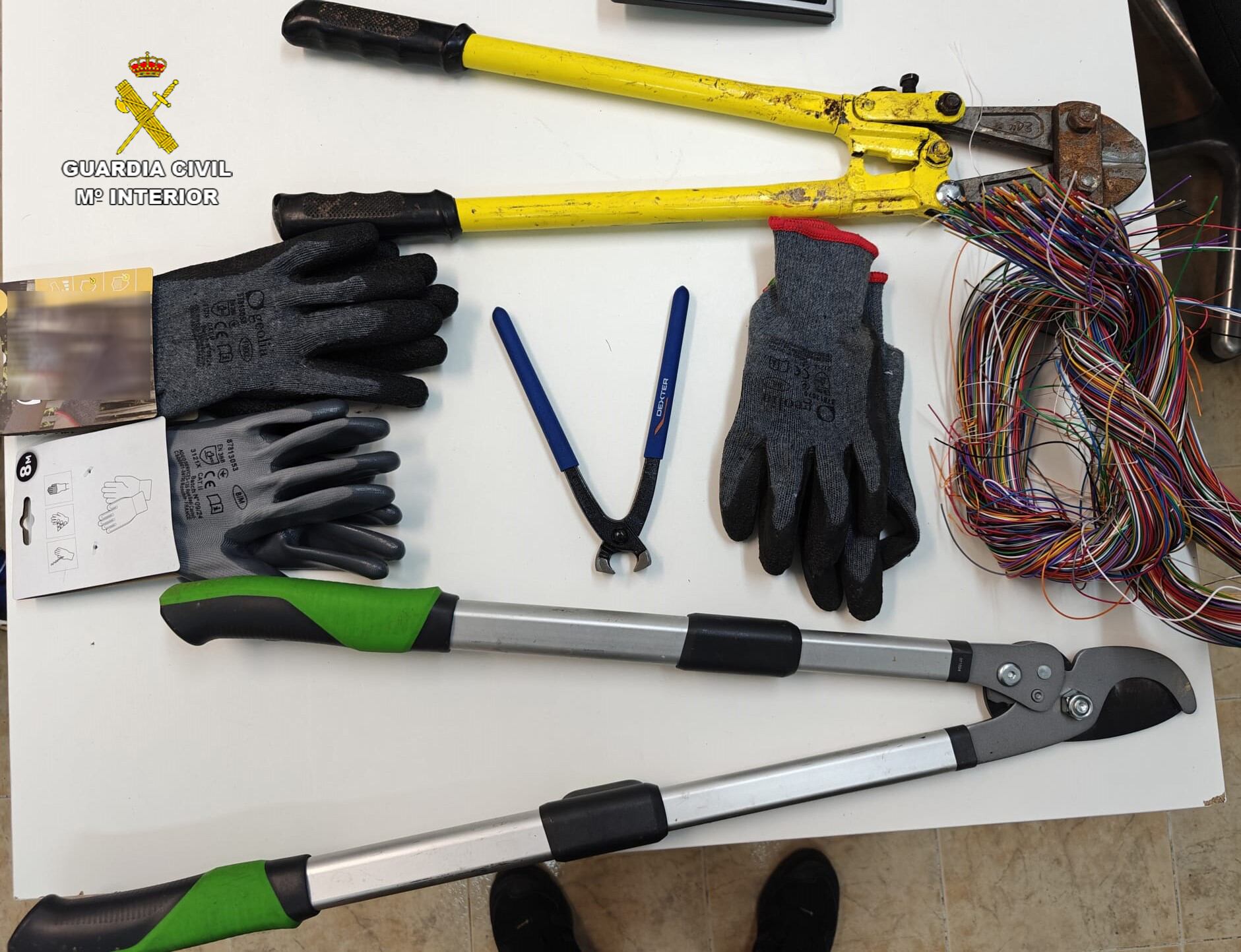 Los individuos portaban una mochila con útiles para el corte, tales como cizallas, tenazas y guantes para la manipulación de cable.