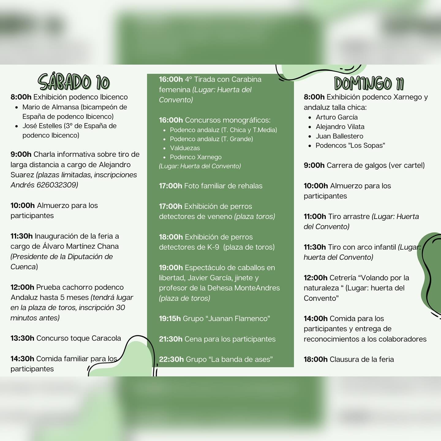 Andrés Chufi, organizador de la feria, ha destacado en la SER que la base de las anteriores ediciones se va a mantener, eso sí, mejorando la experiencia del usuario. Cetrería, pruebas de trabajo, carreras, exhibiciones de perros, charlas, concursos, orquestas y foodtrucks son algunas de las actividades que estarán presente este fin de semana en la localidad conquense.