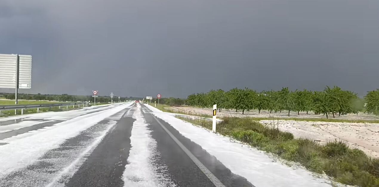 La tormenta de este miércoles fue todavía más fuerte y dejó carreteras y terrenos agrícolas con un enorme manto blanco debido al granizo. Las zonas más afectadas han sido localidades como Quintanar del Rey, Casasimarro y Sisante.