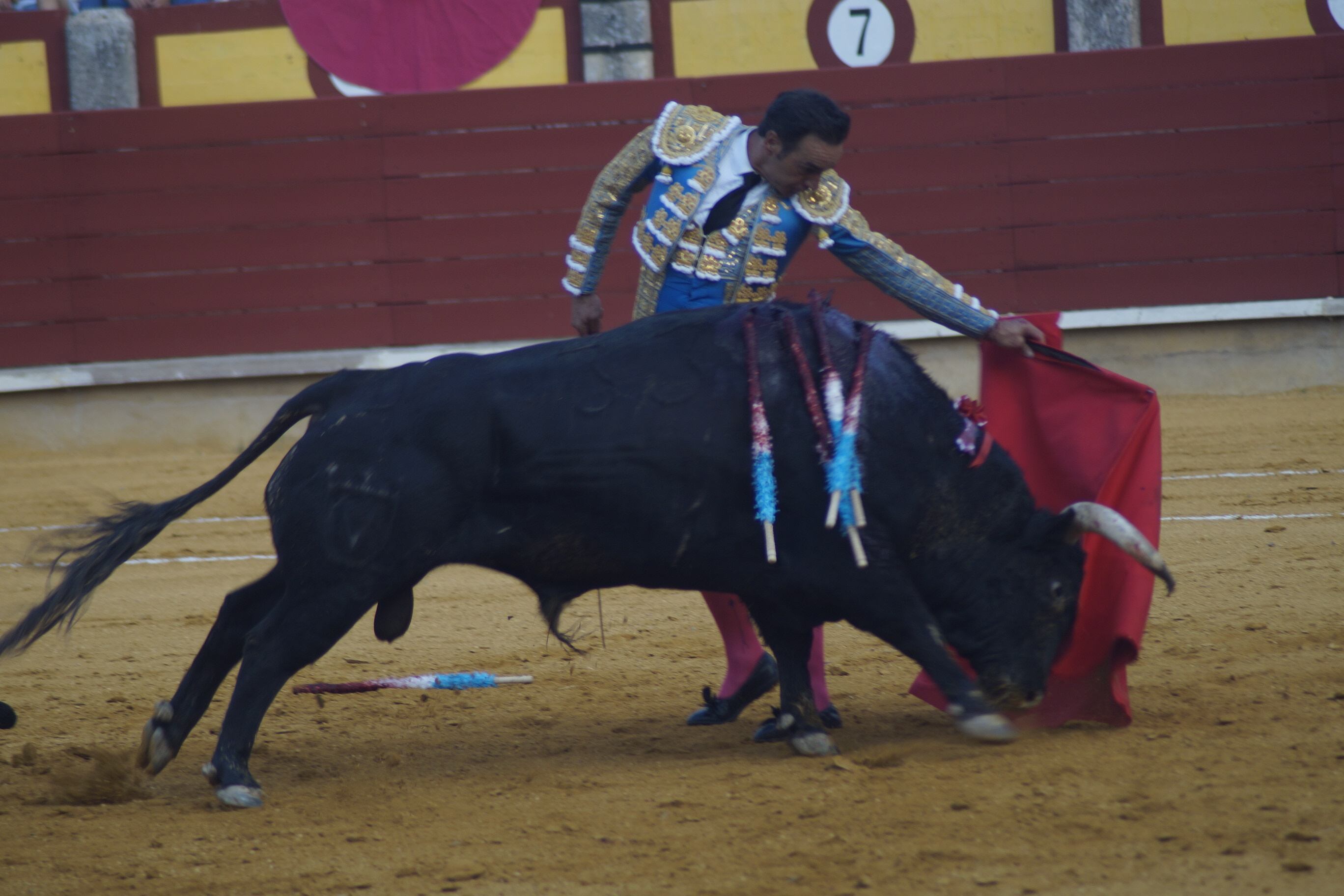 Emilio de Justo comenzó con su primero con el capote con expresión buena composición y bella factura estirándose a la verónica. El toro tenía algo más de transmisión, metía la cara con una pizquita de nobleza en algunos momentos. La faena no llego a coger el vuelo esperado para romper por completo los tendidos, salvo dos series de arrebatados derechazos. Lo que sí hizo emocionar al público fue en la suerte suprema la entrega absoluta del extremeño. Se tiró a matar con una firmeza increíble, tanto que le costó hasta tres volteretas, muy, muy feas. Angustia, nos temimos lo peor, pero hay estuvo la Morena del Prado que desplego su capote para salvarlo. En medio del terrible momento también fue prendido Morenito de Arles que estuvo al quite para salvar a su matador de las astas. La faena hubiera sido de una oreja, pero tras lo sucedido el aficionado premió la raza que le valieron dos apéndices a su esportón.
