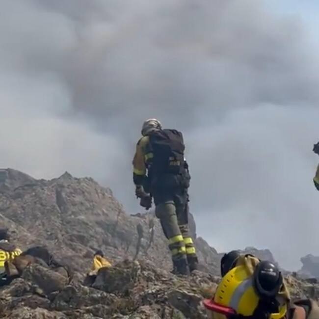 Varios bomberos forestales son retirados del incendio del Pico del Lobo por intoxicación y quemaduras leves
