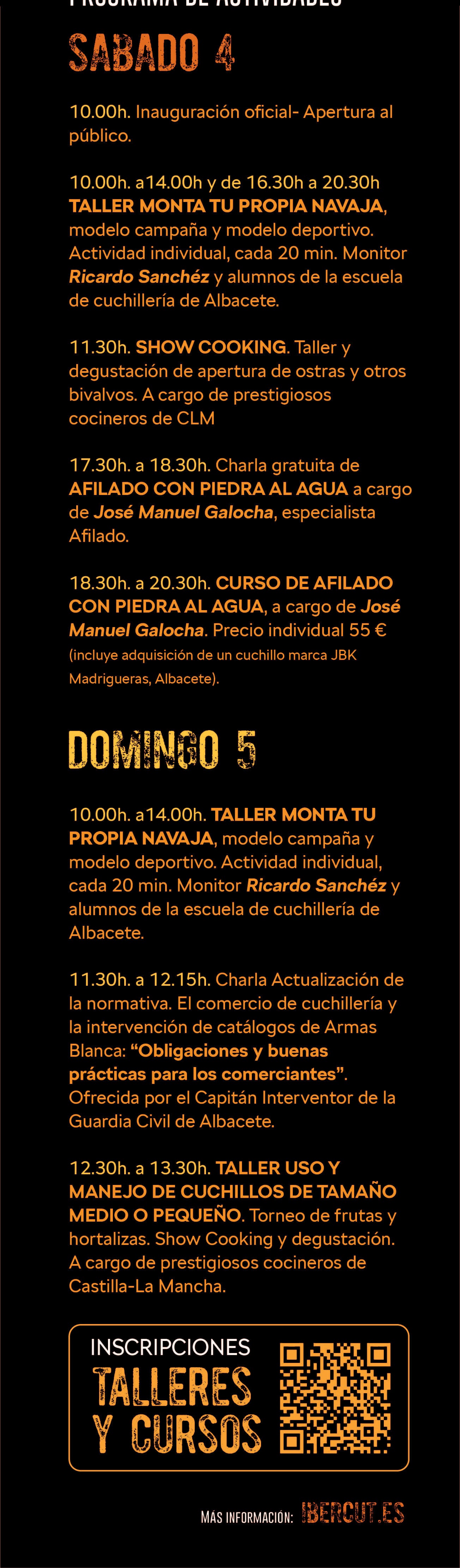 - una charla gratuita sobre esta técnica, así como una charla normativa sobre comercio e intervención de armas blancas, impartida por la Guardia Civil de Albacete