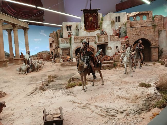 Un gran belén de unos 80 metros cuadrados que ya se puede visitar en el Antiguo Casino de Ciudad Real, completamente nuevo con respecto al de pasadas ediciones y que es, además el más monumental de los que se han hecho desde la asociación, un 30 por ciento mayor: las figuras de primer plano miden 35 centímetros, frente a los 24 habituales, lo que ha obligado también a escalar las construcciones y decorados con técnicas constructivas más avanzadas y con un carácter hiperrealista. Además las piezas están realizadas a mano por uno de los mejores escultores del panorama belenista internacional, José Ángel García.