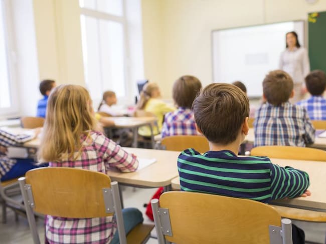 Un grupo de alumnos atiende a una profesora en el colegio / GETTY IMAGES